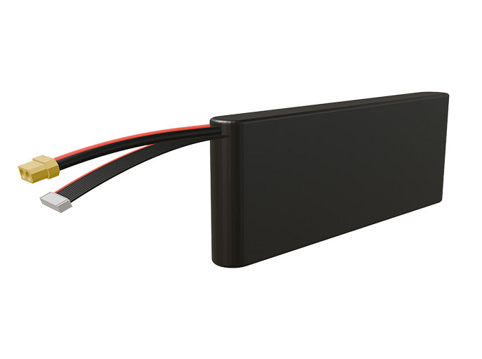 Rendered view of a slim 6000mAh Li-ion pack, used in small UAV and defense-grade robotics projects.