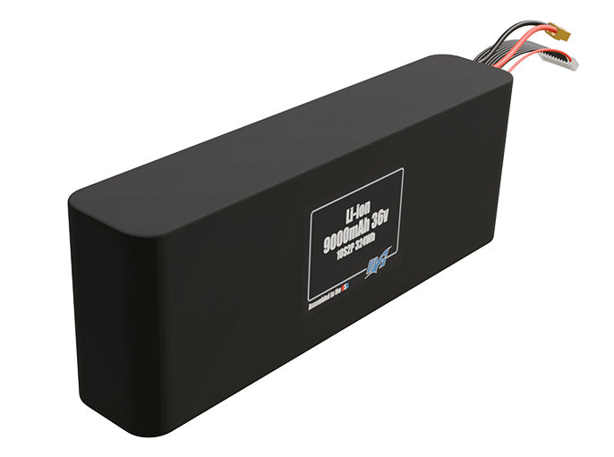 Compact 36-volt 9000mAh lithium-ion battery, built for lightweight drone, UAV, and robotics projects.