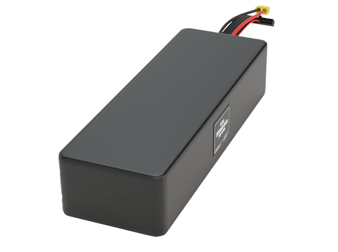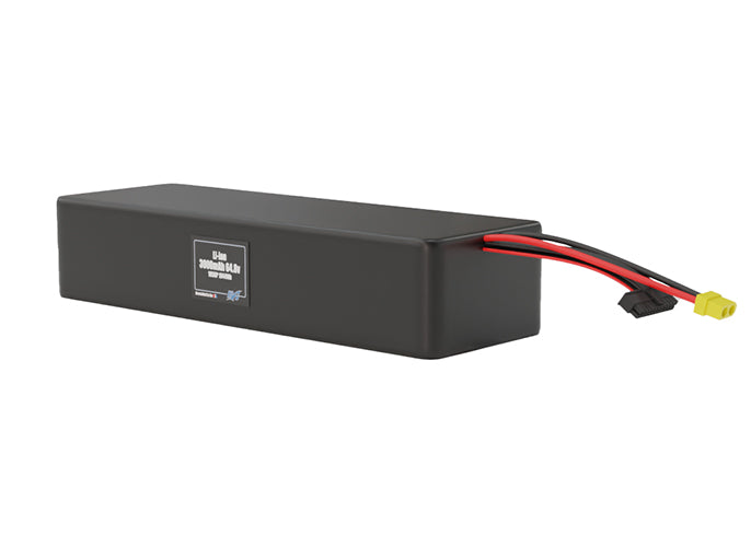 Angled product render of the 30000mAh 108-cell Lithium-ion pack. A lightweight energy source for UAV, drone, and robotic builds.