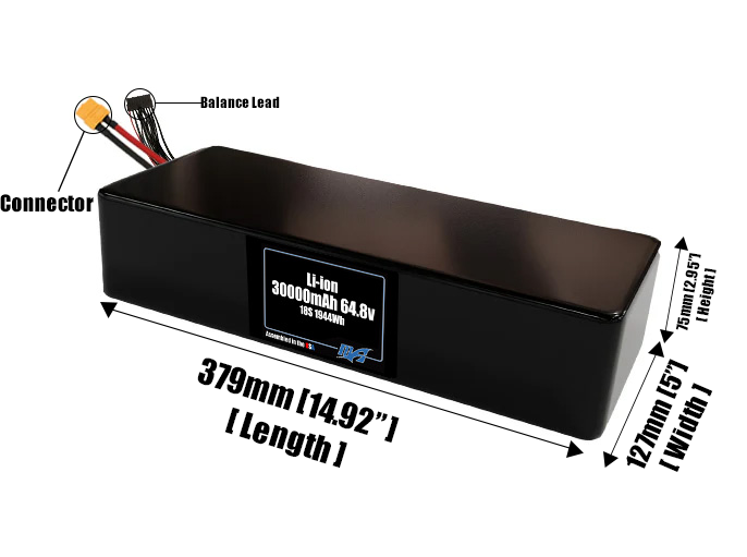 Compact 64.8-volt 30000mAh lithium-polymer battery, built for lightweight drone, UAV, and robotics projects.