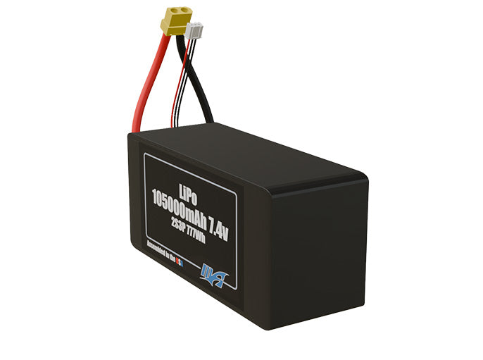 Compact 7.4-volt 105000mAh lithium-polymer battery, built for lightweight drone, UAV, and robotics projects.