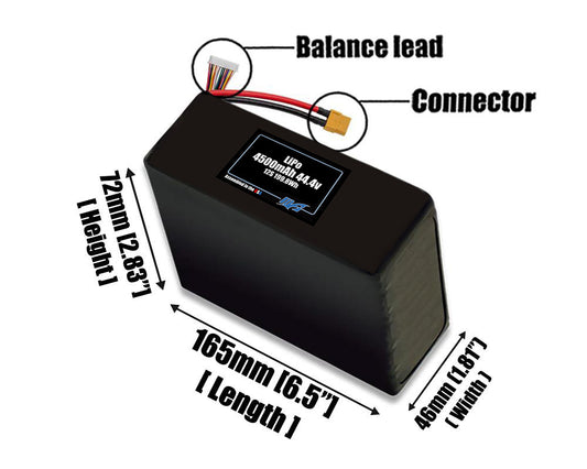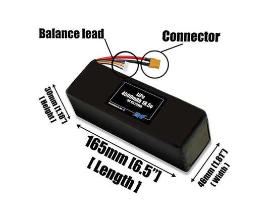 These MaxAmps LiPo batteries are 4500mAh (milliamps) or 4.5Ah in capacity. As with all our LiPo pouch batteries, they are assembled in the USA by our Battery Builders here at MaxAmps.