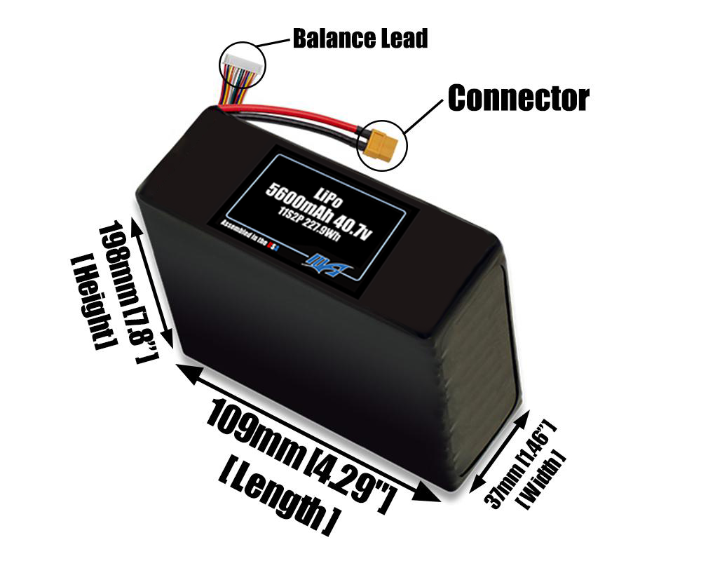 Compact 40.7-volt 5600mAh lithium-polymer battery, built for lightweight drone, UAV, and robotics projects.