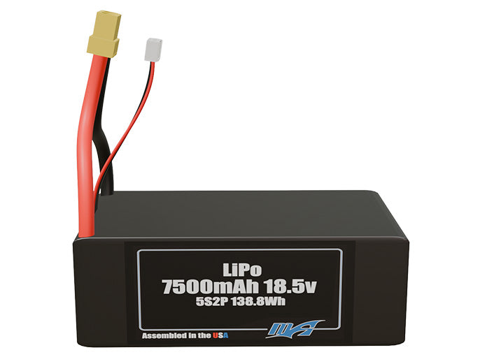 Compact 18.5-volt 7500mAh lithium-polymer battery, built for lightweight drone, UAV, and robotics projects.
