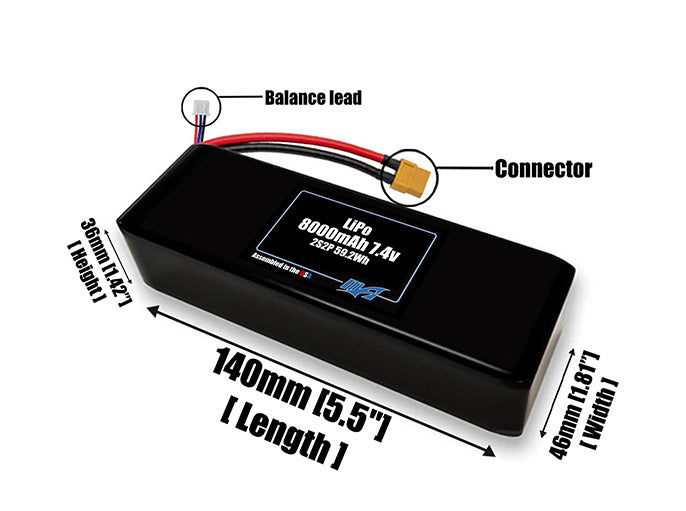 LiPo 8000mAh 2S2P 7.4v Battery Pack