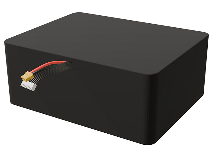 Angled product render of the 45000mAh 63-cell Lithium-ion pack. A lightweight energy source for UAV, drone, and robotic builds.